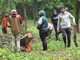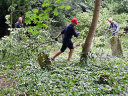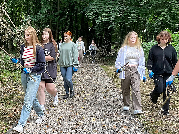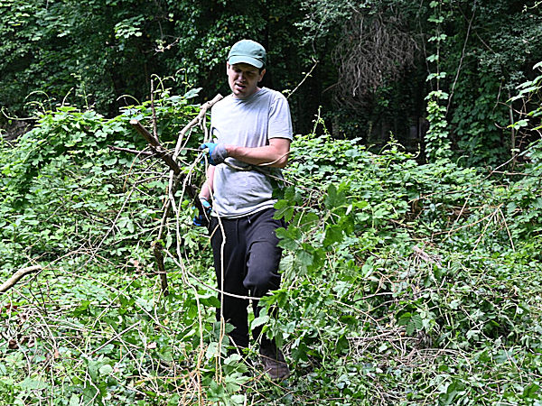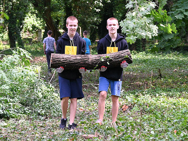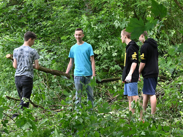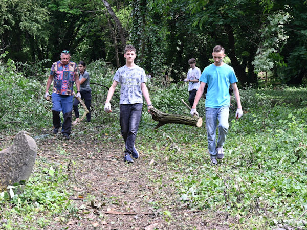 Today, the volunteers from the Adullam Foundation (Fundacja Chrześcijańska Adullam) were joined by students from the John Paul II Technical High School. Together, they worked non-stop, continuing to clear the area where we had carried out the preparatory work. The piles of trunks and branches, next to the path, kept growing. The branch shredder was working non-stop and, slowly, we begin to see the areas that had been hidden by dense vegetation.
