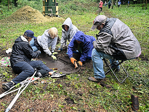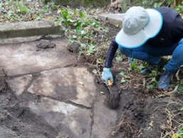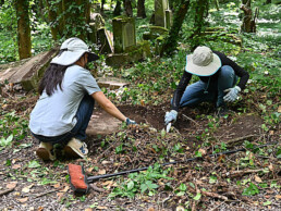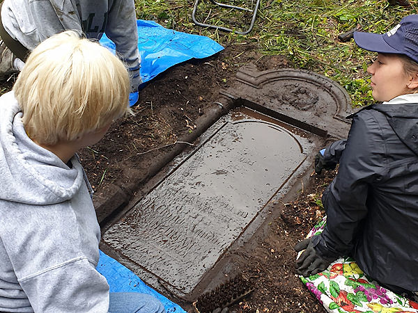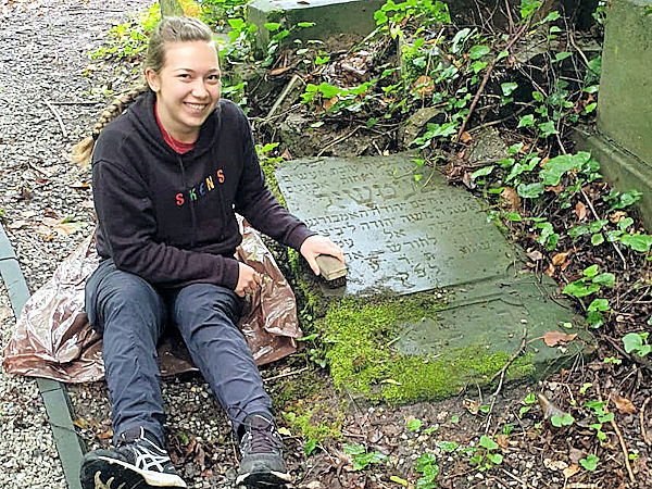 After finding the broken matzevah, covered in vegetation and dirt, Ruth and Gail cleaned it, all the students gathered around the grave and performed a short ceremony.