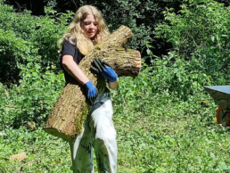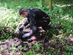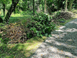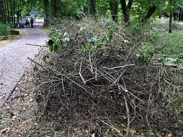 In a plot of about 100 square meters, we’re conducting an ecological plant control experiment, without the use of chemicals. Ecological sheets were covered with shredded branches. In a few months, we will find out whether this is a solution for the control of wild plants in open areas and between the tombstones.