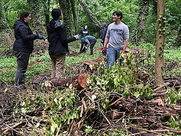 Today, work continued on the plots where professional loggers and the Nissenbaum Foundation work group had prepared the area in advance. The students were busy taking the felled tree trunks and branches onto the path for shredding and removal.