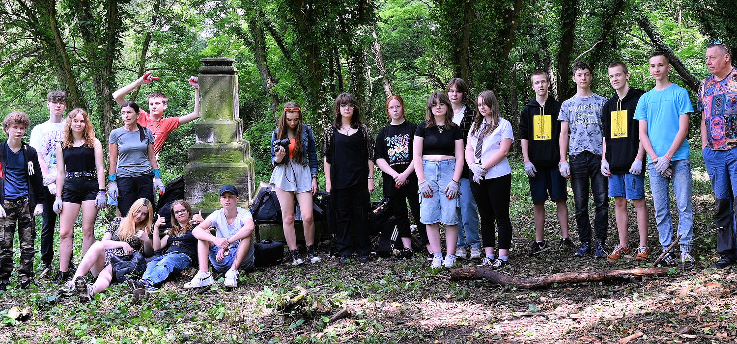 During the day, we were surprised to discover that, despite the neglect, there is interest in the cemetery – a class of students from Elementary School No. 3 from Kiedrzyn near Częstochowa came to visit the Cemetery, as did historian Wiesław Paszkowski with a group of Częstochowa retirees.