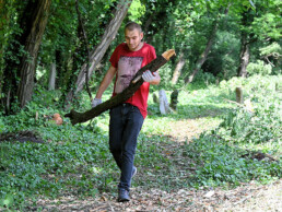 The students and volunteers were busy removing tree trunks, which had been cut down a few weeks ago by professional loggers, taking the branches and bushes to the shredder,which we have rented for the work, and to the path from which they will be removed at the end of the work.
