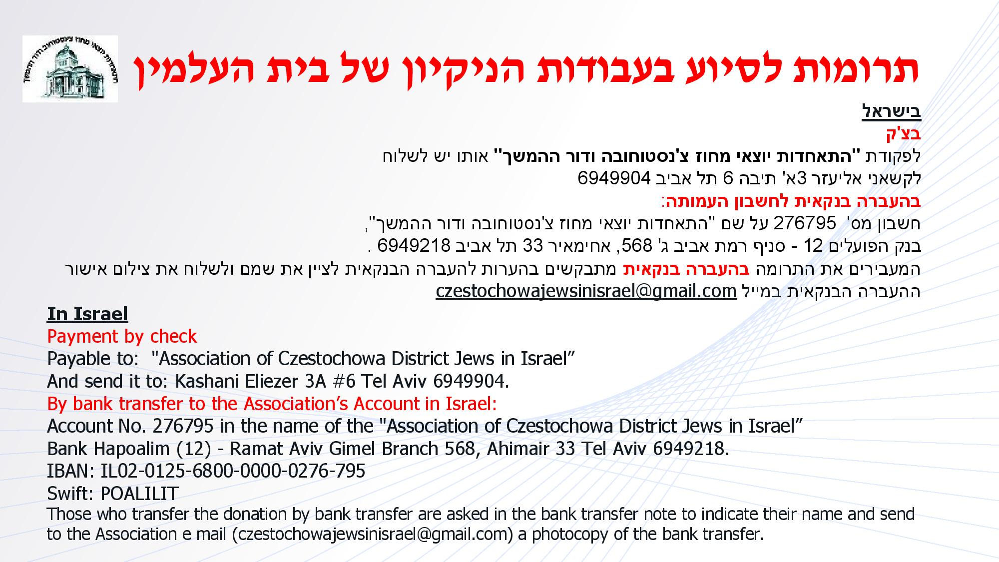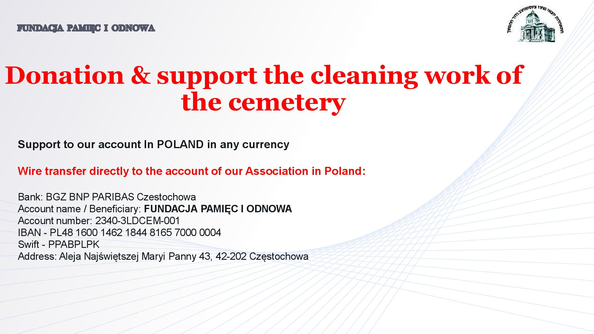 The Association of Częstochowa Jews in Israel supports these works by financing the purchase of tools and gloves,