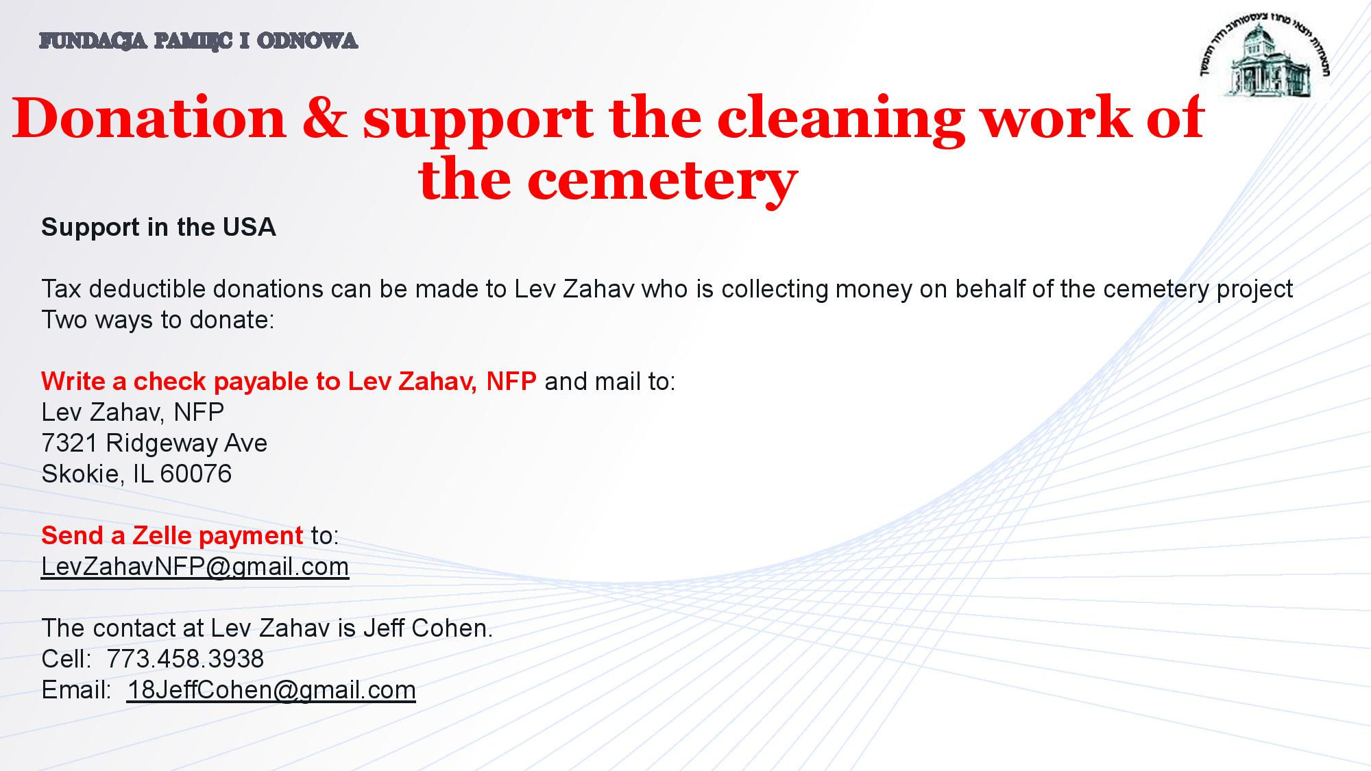 On an almost annual basis, Alon Goldman, Vice-President of the World Society of Częstochowa Jews & Their Descendants and Chairman of the Association of Częstochowa Jews is Israel, has organised and led a clean-up of the Częstochowa Jewish cemetery. Over time, Alon has been joined by volunteers from various organisations, both adults and young people in this holy work.