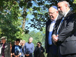 All those gathered commemorated the victims of the ghetto with a minute of silence, followed by the laying of flowers, lighting of candles and placing traditionally symbolic stones at the monument..