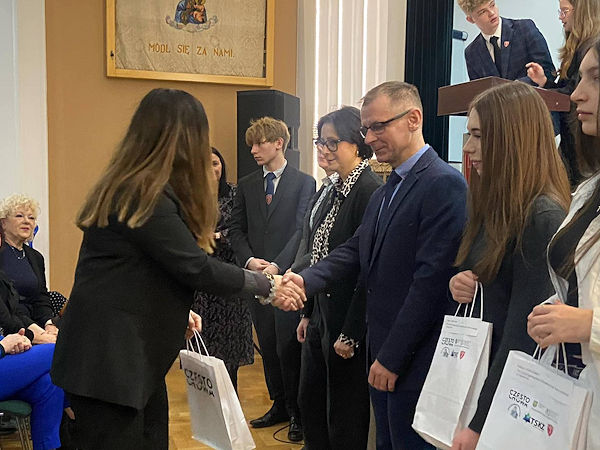 - Iwona Brzezowska, Director of the General Władysław Anders High School Complex, Principal of the General Anders High School, for the contacts she made with the school principals and organising their work schedule for all the days of the week.
