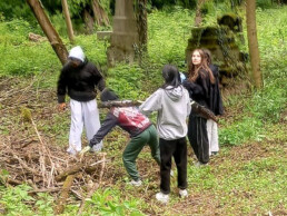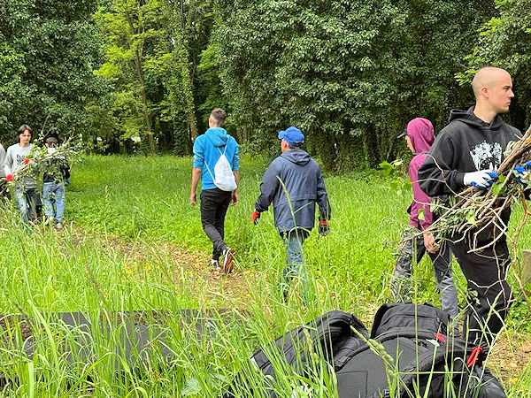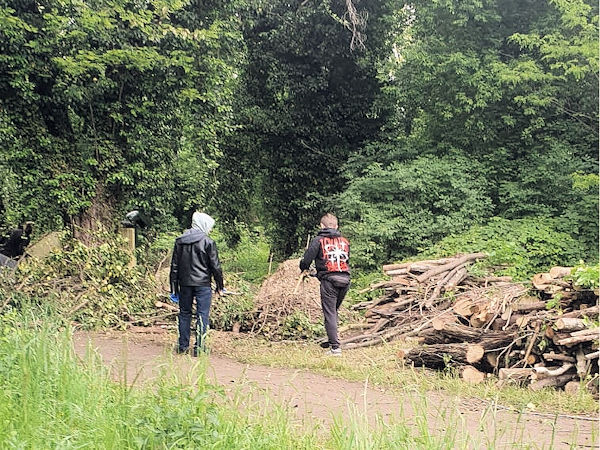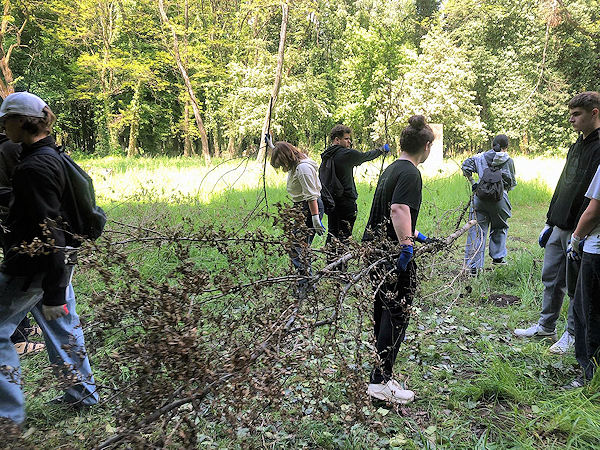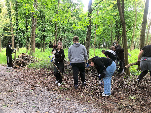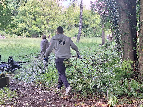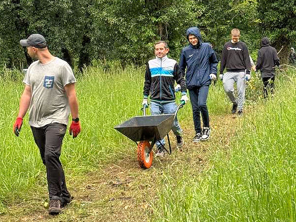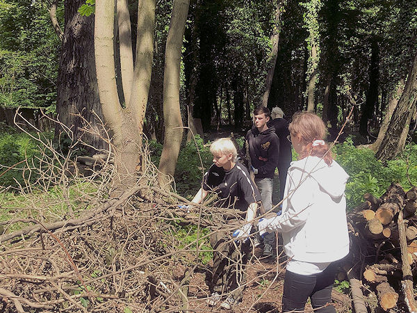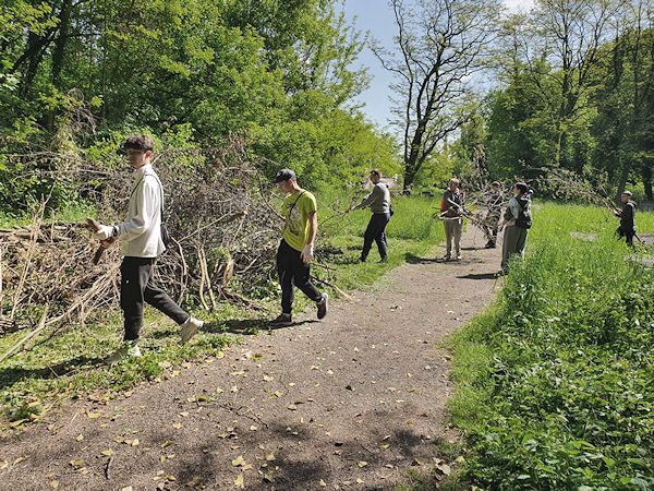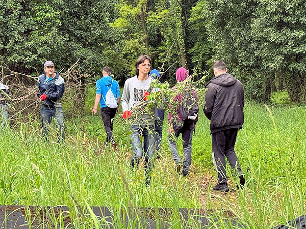 Today, the volunteers from the Adullam Foundation (Fundacja Chrześcijańska Adullam) were joined by students from the John Paul II Technical High School. Together, they worked non-stop, continuing to clear the area where we had carried out the preparatory work. The piles of trunks and branches, next to the path, kept growing. The branch shredder was working non-stop and, slowly, we begin to see the areas that had been hidden by dense vegetation.