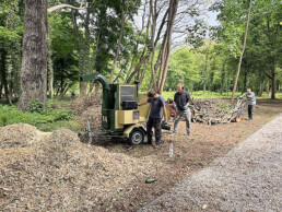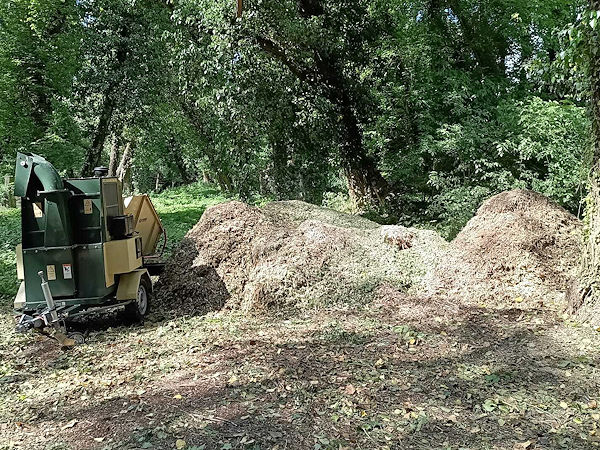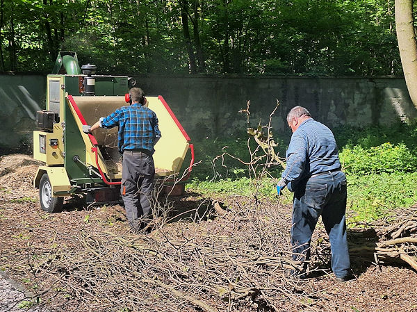 Szymon, the shredder operator, and his assistant, worked non-stop and, by the end of the day, finished shredding all the branches and only piles of shredded material remained for removal from the cemetery grounds.