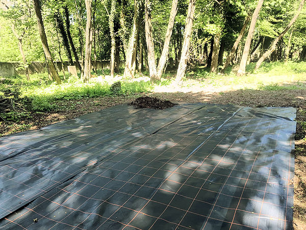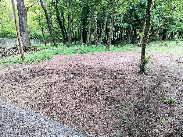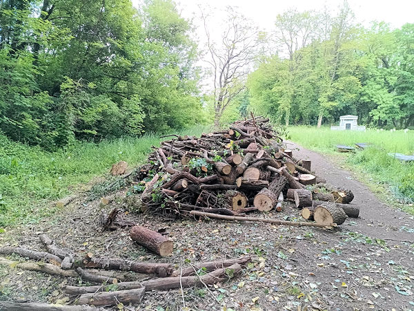 In a plot of about 100 square meters, we’re conducting an ecological plant control experiment, without the use of chemicals. Ecological sheets were covered with shredded branches. In a few months, we will find out whether this is a solution for the control of wild plants in open areas and between the tombstones.