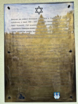 Today, a memorial plaque was unveiled at the entrance to the former Częstochowa Jewish Gymnazjum (High School), now the home of the C. K. Norwid IX Comprehensive High School.
