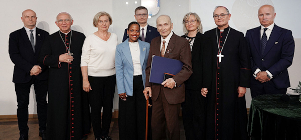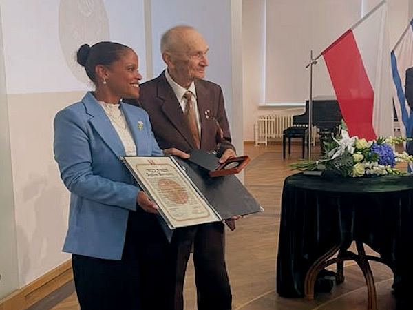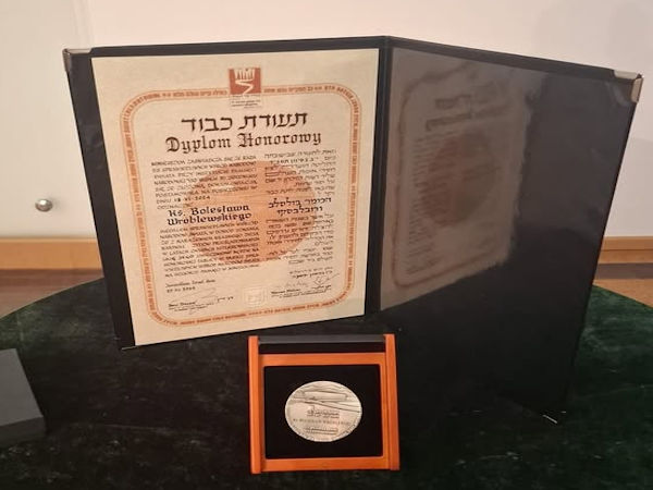 In a moving ceremony in Częstochowa’s Old Town Hall, , attended by the Mayor of Częstochowa, Krzysztof Matyjaszczyk, the Archbishop of Częstochowa, Dr. Wacław Depo, members of the city’s Jewish community and guests, Bosmat Baruch, Deputy Ambassador of Israel to Poland, presented the Yad Vashem Certificate and Medal to Bolesław Majewski, 93, the priest’s nephew.