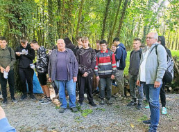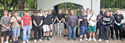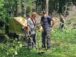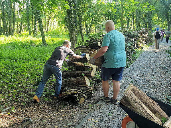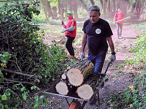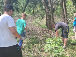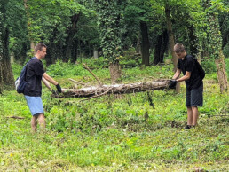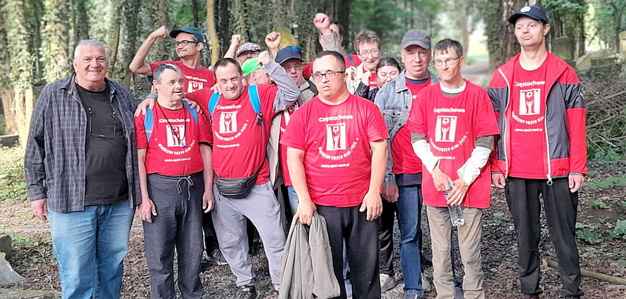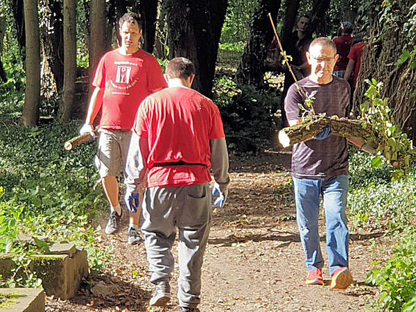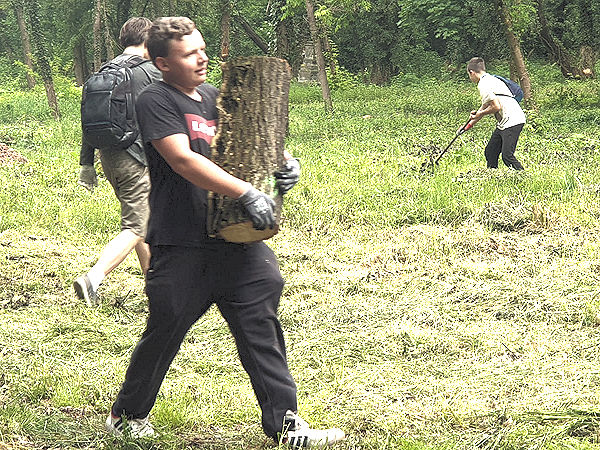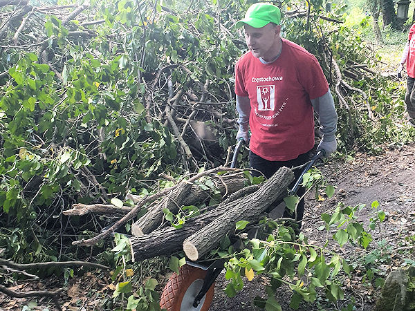 The high school students were divided into groups, who carried the cut logs and branches to the path and stacked them into piles. Tomorrow, the shredder will begin its work on the branches. The results are already! In the afternoon, a group of volunteers from the ADULLAM Foundation arrived, together with a local partnership “Ancient City-New Life”, who came to work with us at the cemetery. Particularly exciting is that they were accompanied by a special needs group from PSONI Częstochowa, who also joined in our work.