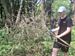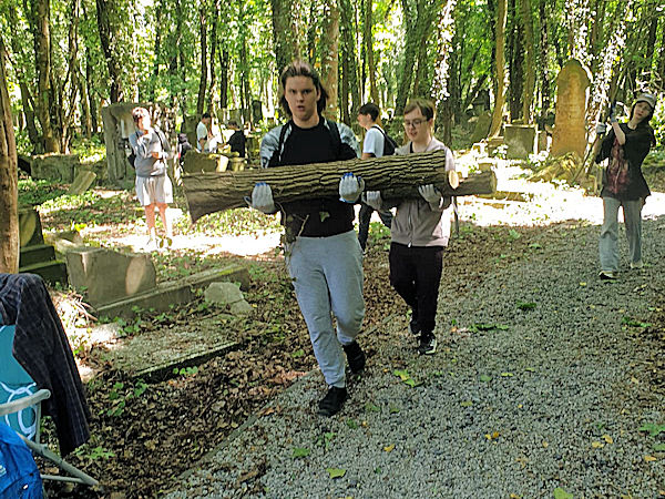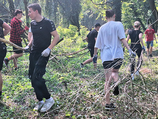 For our second day’s work, we were joined by volunteers from the ADULLAM Foundation, led by Robert Kamela, and by 25 students from the Kazimierz Pułaski Mechanical-Electrical High School Complex. We were also joined by World Society friend and stalwart in preserving Częstochowa’s Jewish heritage, Krzysztof Straus, who did amazing work with his mechanical trimmer. Thank you all!