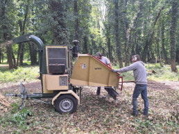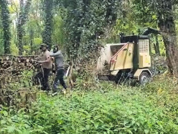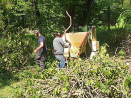 Szymon, the shredding machine operator, and his helpers worked throughout the day to finish all the branch shredding, leaving only stacks of shredded vegetation to be removed.