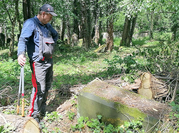 Thanks to the preparatory tree-felling work carried out by the Nissenbaum Family Foundation workers, again, today’s work centred around removing the logs of the felled trees and bushes from the graves. These were stacked along the cemetery path in order for them to be either removed or shredded.