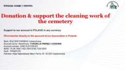 • The City of Częstochowa and Częstochowa Mayor Krzysztof Matyjaszczyk who, although they do not acknowledge their ownership of the cemetery, support our work with everything we need.