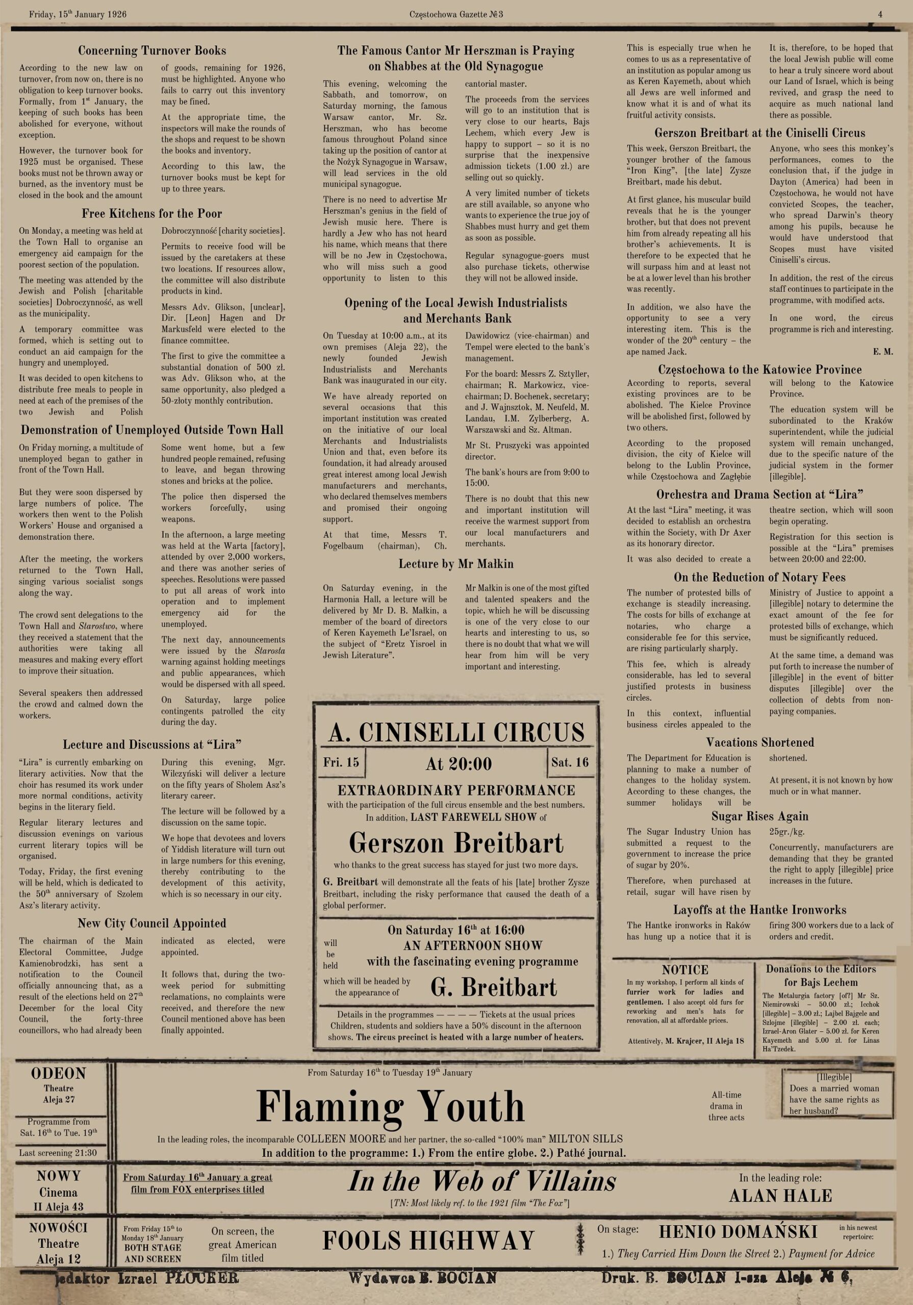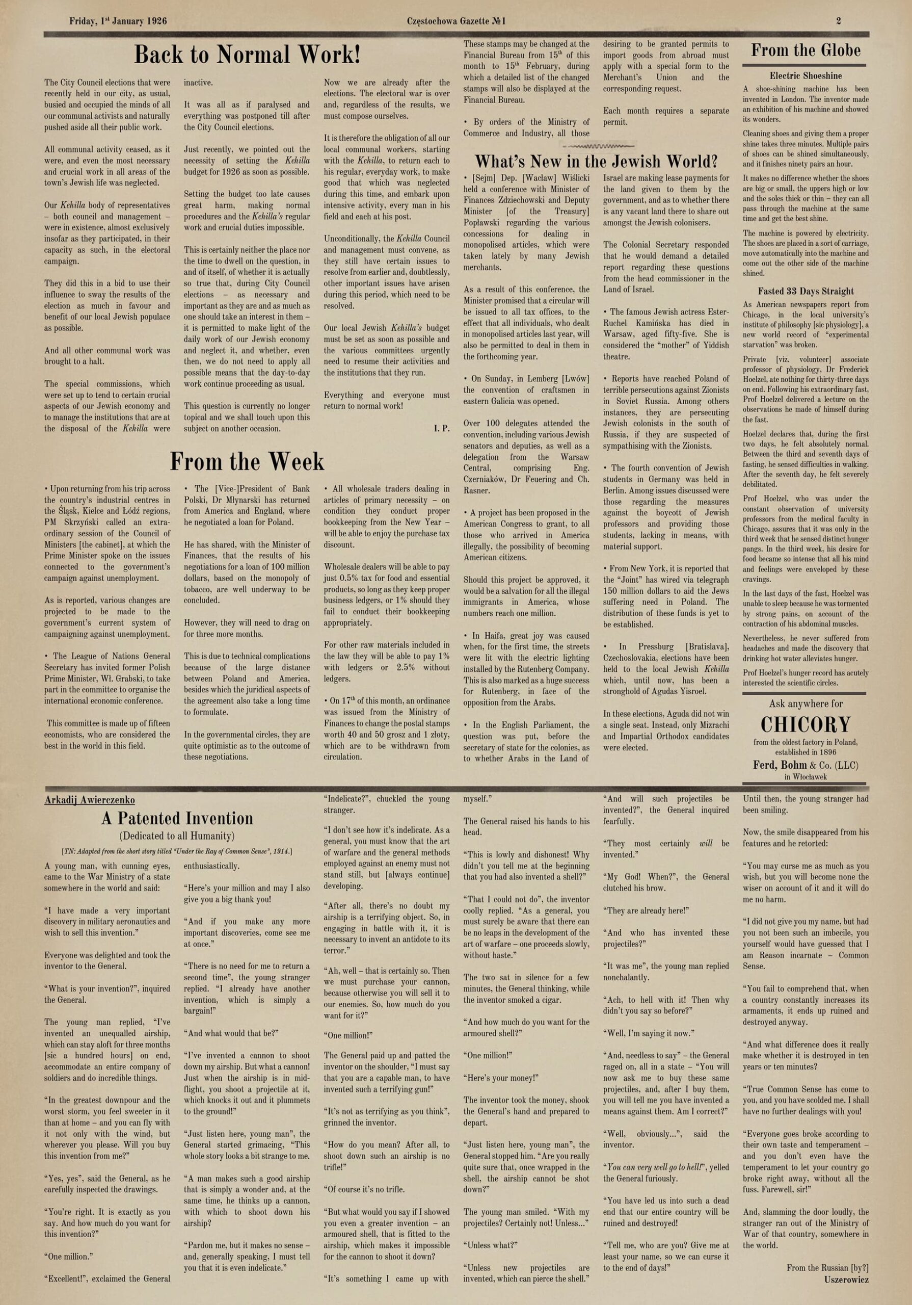 Please note: Some text may not be translated as it is illegible due to the quality of the scanned newspaper.