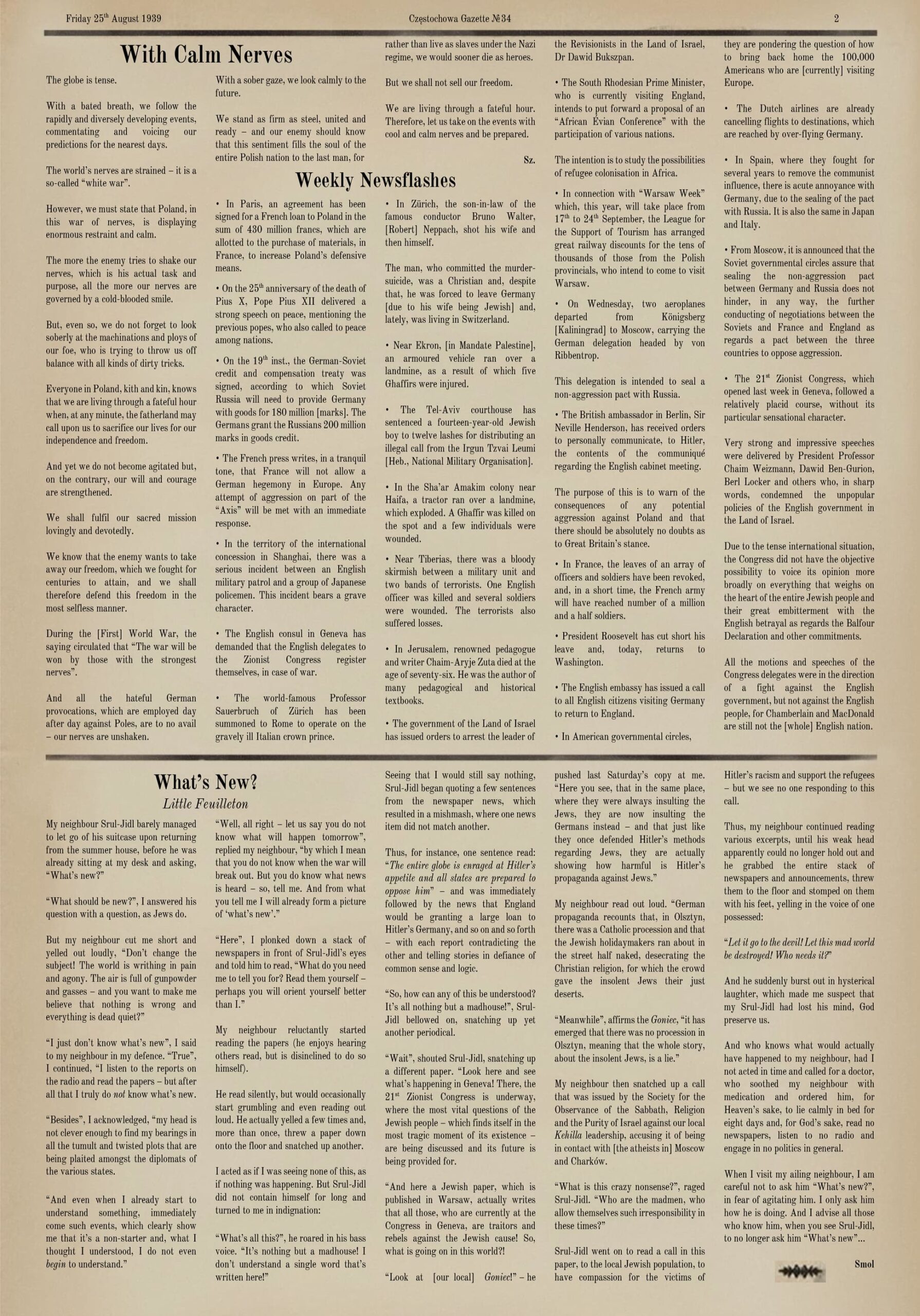 Unlike other issues of this newspaper, published on Fridays, this issue was published on a Monday – chol ha’Moed Pesach (4th day of Passover).