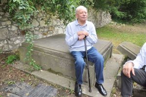 Sigmund Rolat next to the grave of his brother Jerzy – today the face of the gravestone is partly difficult to read.