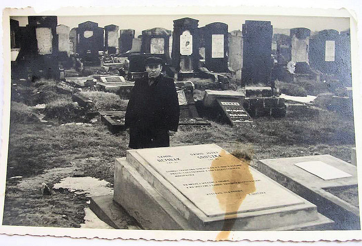 Pic left: Abraham Gruzska at his brother’s grave – Częstochowa 1946