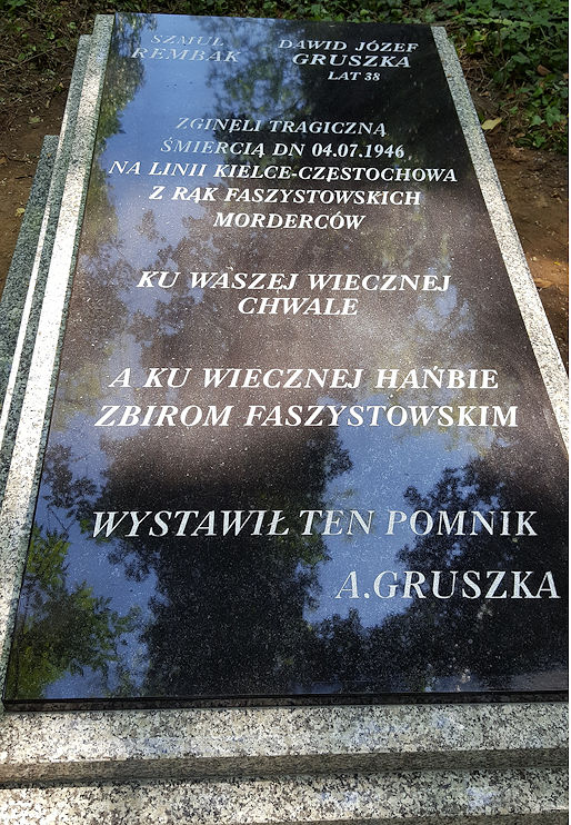 On 4th July 2018, a memorial ceremony was held in front of the house at ul. Planty 7 in Kielce. Forty-six Memorial Stepping Stones were discovered in memory of the victims of the Kielce pogrom, among them stumbling blocks bearing the names of the two Czestochowa Jews – Szmul Rembak and Dawid Yosef Gruszka.