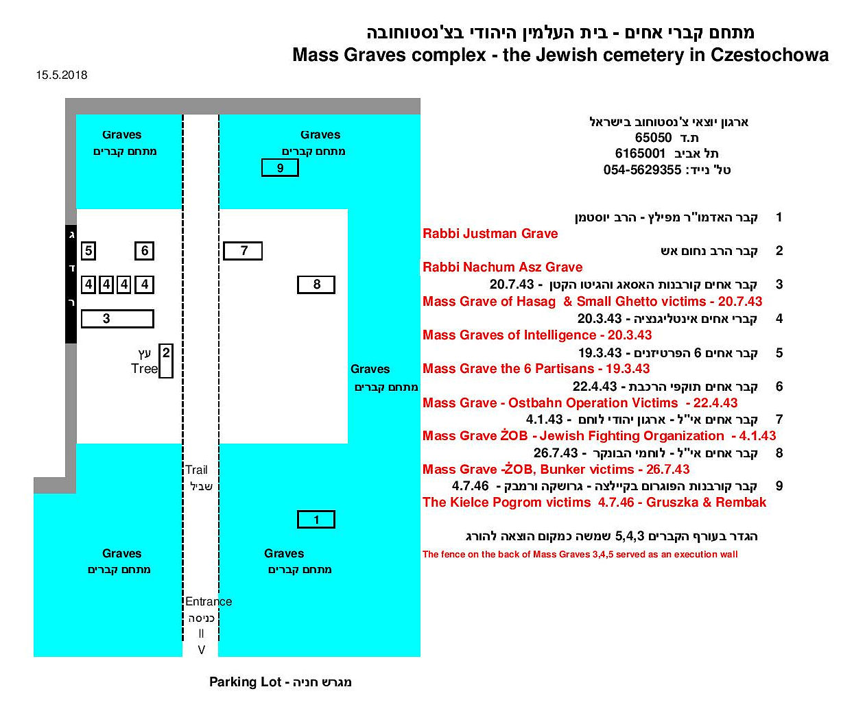 In 2018, Alon Goldman integrated the data from the mapping conducted by the historian Wiesław Paszkowski with the mapping created by the Gidonim and the results of the work were uploaded to the Gidonim website which can be searched in IN HEBREW or IN ENGLISH. Anyone who needs help in searching for graves of their relatives is welcome to contact Alon Goldman by email czestochowajewsinisrael@gmail.com.
