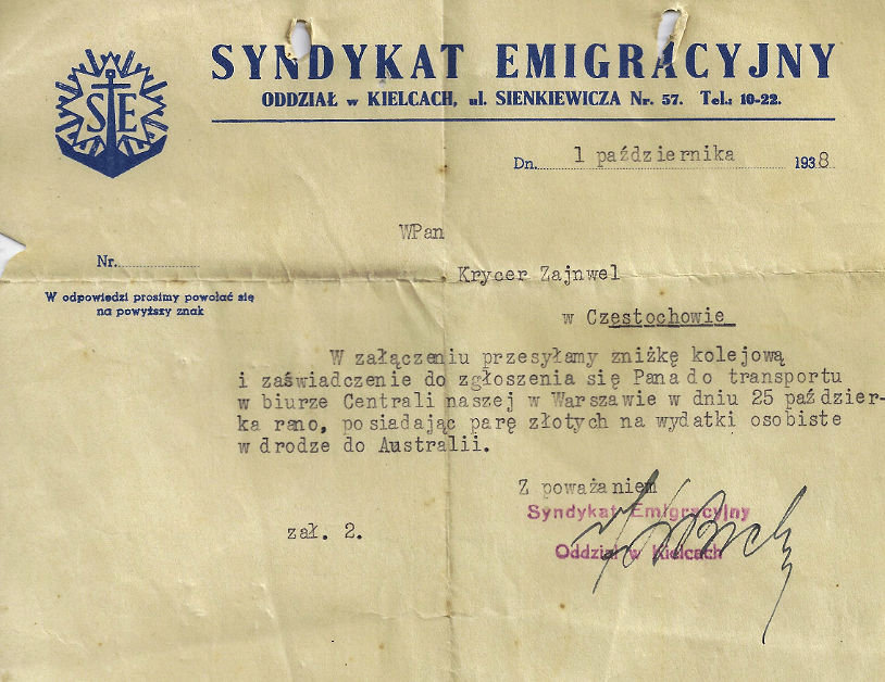 In 1900, his sister, Esther Czarnylas, married Szlama Joskowicz, who was born in Będzin on 22nd November 1874. The couple had three children: Sarah born 23rd October 1902, Israel Lejbusz born 22nd April 1906 and Ruchla Frajdla born on 3rd October 1911. Esther and Szlama’s son, Israel Lejbusz married Ruchla Matla and, in 1934, they had a son David.