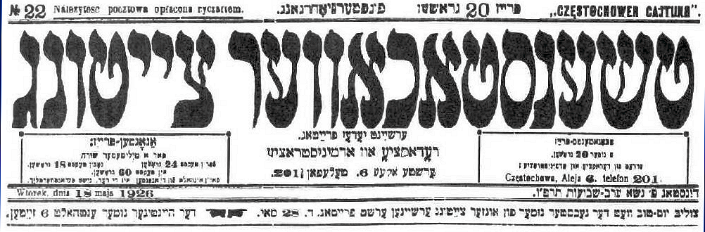 as many issues as possible of this Częstochowa Jewish newspaper.