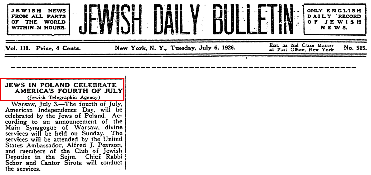 The Jewish community, together with Polish nation, celebrated the 150th anniversary of United States [See Note 10 below] Independence.