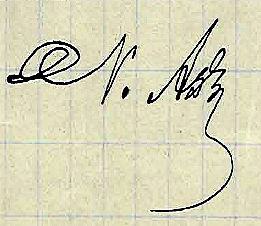 Rabbi Asz (his signature, pic left) took an active role in defence of ritual slaughter. With the help of two of his sons, in 1935 he published a book entitled In Defence of Ritual Slaughter. The book was a great success. The Jewish Community Council of Warsaw published a second edition which it distributed to all members of the Sejm with the aim of presenting the arguments from the Jewish point of view.