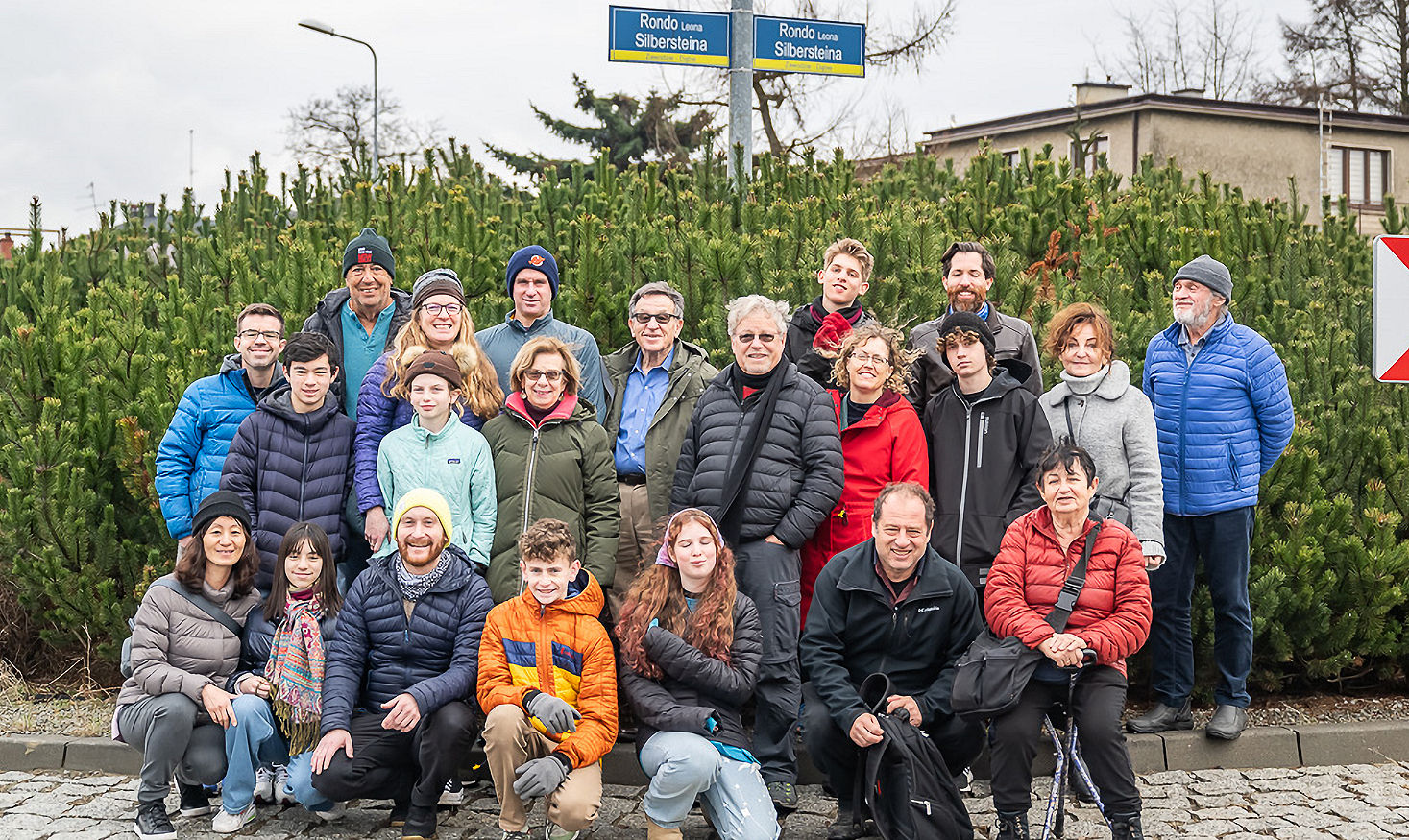 Twenty relatives and descendants of Leon Silberstein z”l, from the United States and Israel gathered in Częstochowa, together with city officials and civic leadership, to commemorate Silberstein’s heroism, as a partisan, who saved hundreds from death during the Holocaust. The ceremony was held at the Leon Silberstein Roundabout (Pol. Rondo) named in his honour by the Częstochowa City Council in April 2023.