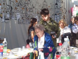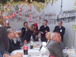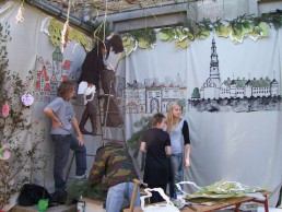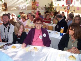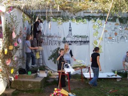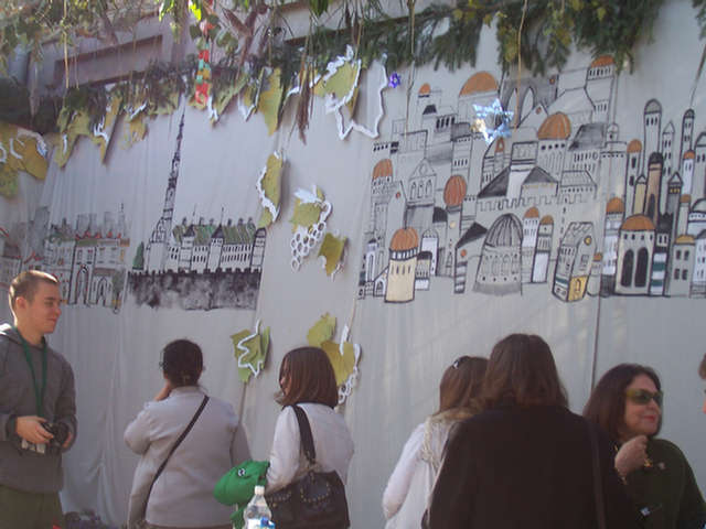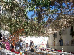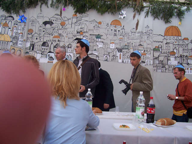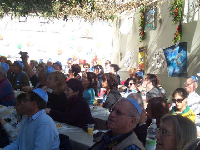 The succah was HUGE with students from ten different schools around the world providing the decorations.